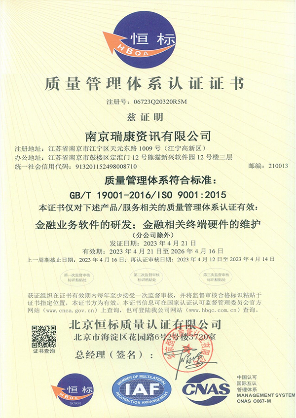 質(zhì)量管理體系認(rèn)證證書